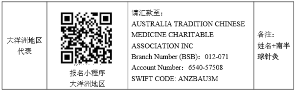 注册费优惠价:AUD $1000。优惠价仅限居住在大洋洲地区、参加南半球中医药针灸行业发展研讨会的代表。