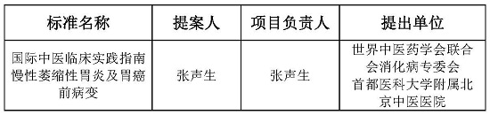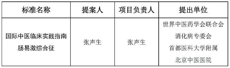 世界中医药学会联合会国际组织标准《国际中医临床实践指南肠易激综合征》《国际中医临床实践指南慢性萎缩性胃炎及胃癌前病变》 立项通知