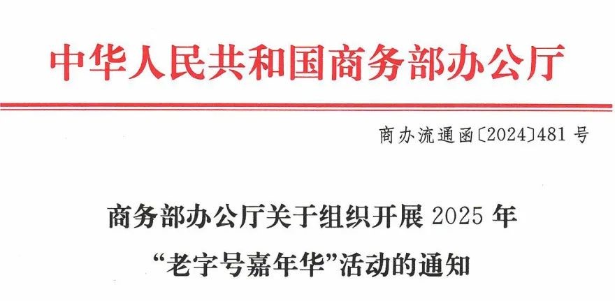 为贯彻落实商务部等8部门《关于促进老字号创新发展的意见》,推动老字号守正创新发展,大力发展国货“潮品”等新的消费增长点,商务部将组织开展2025年“老字号嘉年华”活动。现将有关事项通知如下: