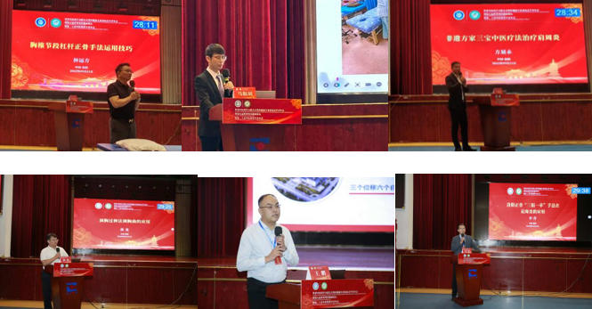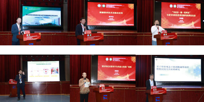 九位国内外知名专家带来了精彩纷呈的专题报告,内容涵盖理论创新、临床研究、技术应用及国际化推广等多个维度。天津中医药大学第一附属医院王平教授作了《神经根型颈椎病的中医循证研究》专题讲座,系统阐述了中医药治疗神经根型颈椎病的科学依据与临床优势。长春中医药大学附属医院吴兴全教授开展《脏腑推拿技术的临床应用》讲座,展示了脏腑推拿技术的独特魅力。林远方教授带来《基于骨盆前倾的相关盆脊智能装备研发思路与展望》讲座,探讨了现代科技与传统整脊技术融合的创新方向。韦春德教授作了《韦以宗“一圆一说两论”与青少年特发性脊柱侧弯的辨证论治》讲座,展示了“一圆一说两论”经典理论指导下青少年特发性脊柱侧弯的精准诊疗策略。蔡熙然教授带来《探讨印尼以整脊学为突破口的推广策略》讲座,为中医整脊技术的国际化传播提供了宝贵思路。杨启光教授带来《基于整体观念下的调腹通督治疗腰椎间盘突出症的研究》讲座,体现了中医整体思维在解决复杂脊柱问题中的价值。王慧敏教授带来《六经辨证针药结合治疗颈性头晕的临床观察》讲座,展示了针药结合综合疗法治疗颈性头晕的显著疗效。王世轩教授作《退行性腰椎管狭窄症的临床经验》讲座,丰富的临证心得令与会者受益匪浅。马航展教授带来《脊柱矢状位平衡:临床诊疗的新视角》讲座,阐释了应用现代脊柱评估与治疗的重要理念。
