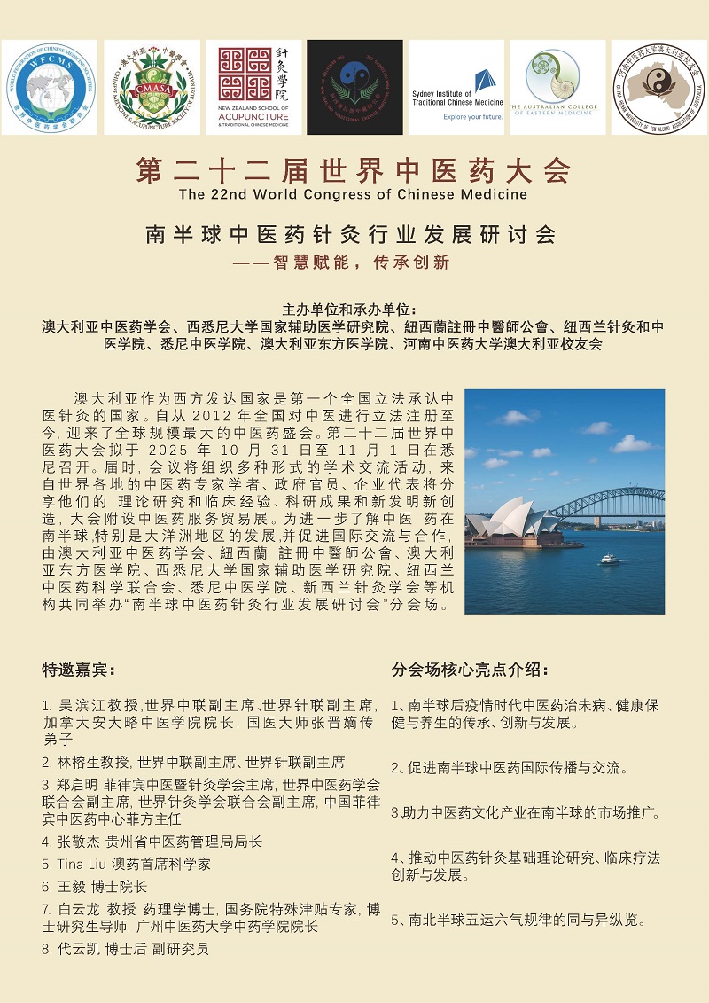 第二十二届世界中医药大会分会场推介——南半球中医药针灸行业发展研讨会