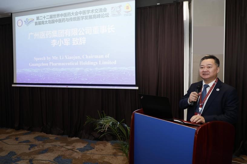 广州医药集团有限公司董事长李小军先生作为企业代表致辞,分享了广药集团在推动中医药国际化、现代化方面的实践与展望。