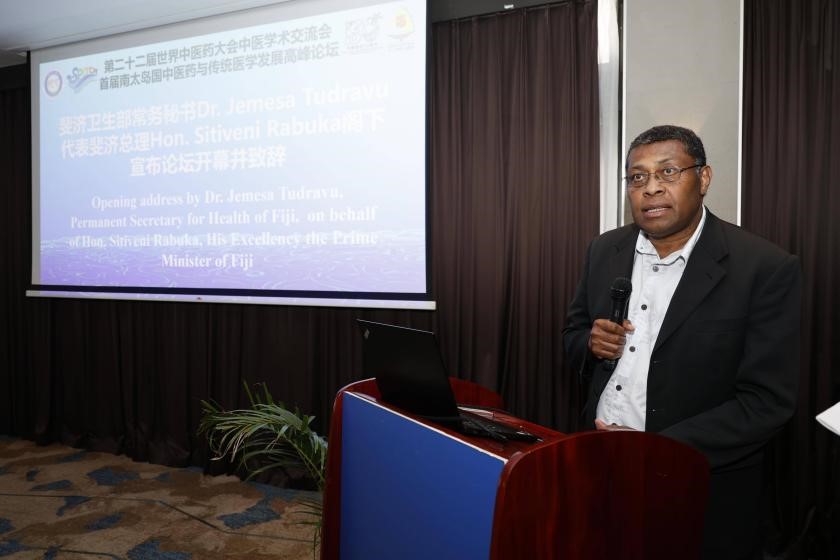 斐济卫生部常务秘书Jemesa Tudravu博士代表斐济总理Sitiveni Rabuka阁下出席开幕式并致辞,表达了斐济政府对传统医学及中医药发展的支持与重视。
