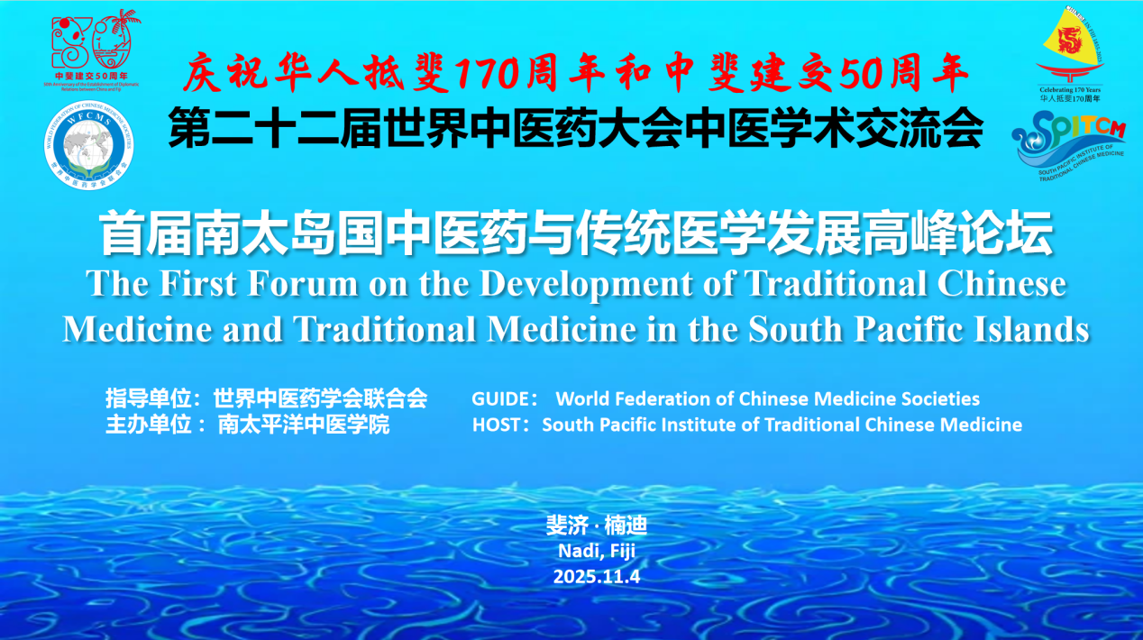 本次论坛由世界中医药学会联合会指导召开,南太平洋中医学院主办,以"世界与南太,传统与现代,交流与合作、中医药和传统医学走进南太岛国"为主题,汇聚了来自斐济政府、中国驻斐济使馆、世界中医药学会联合会、中医药界、传统医学领域及知名企业的众多官员、专家与学者,共同探讨传统医学与中医药在南太平洋地区的传承、创新与高质量发展。