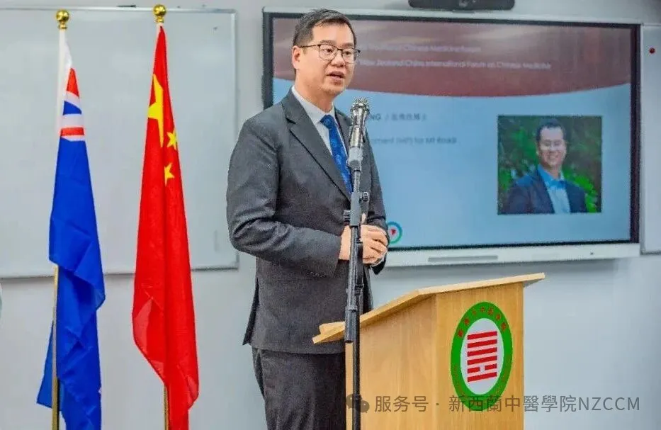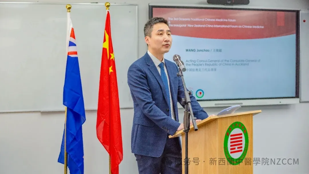 王俊超先生代表中国驻奥克兰总领馆致辞表示,近年,中医药在新西兰发展迅速,新西兰中医学院为新西兰的教育和医疗发展做出巨大贡献。希望通过本次论坛,加强两国人民的交流,探索中医药在新西兰更广阔的合作。