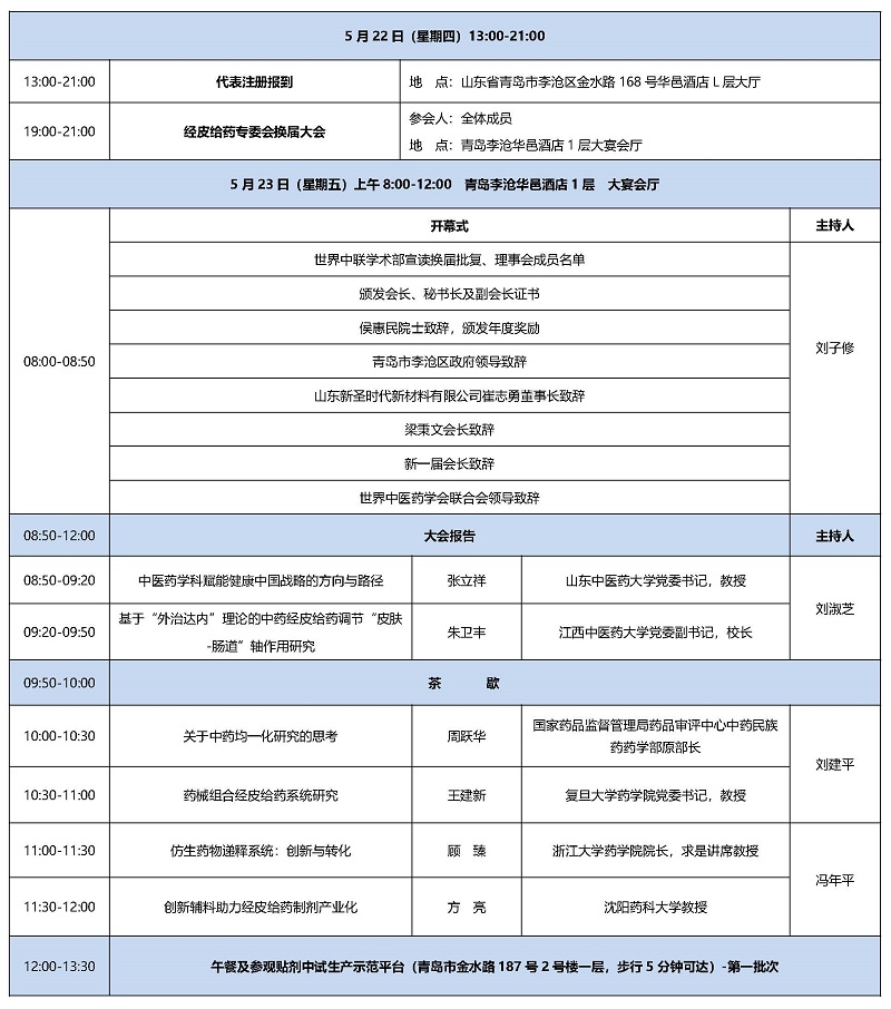 世界中医药学会联合会经皮给药专业委员会换届大会暨第十届学术会议日程