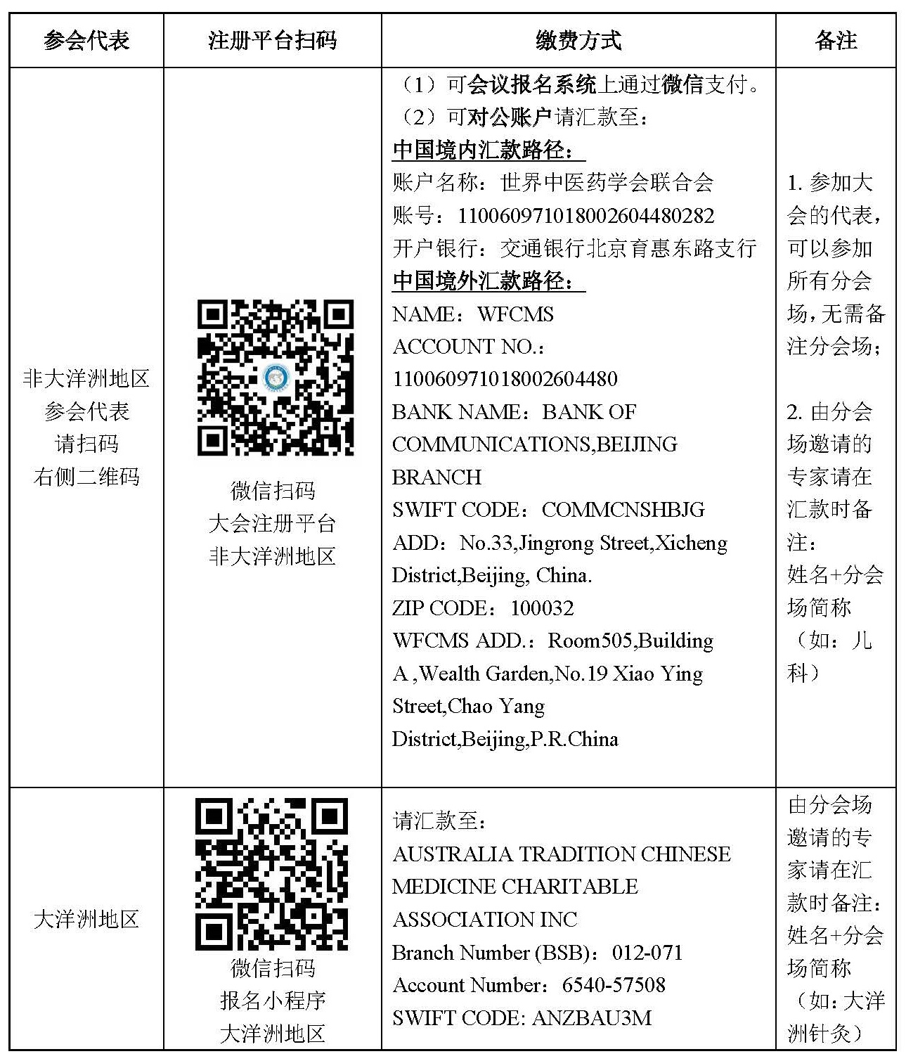 备注:非分会场邀请的专家,汇款时备注姓名即可,不用加分会场简称;由分会场邀请的专家,汇款时备注姓名+分会场简称,如:儿科,大洋洲针灸,等。