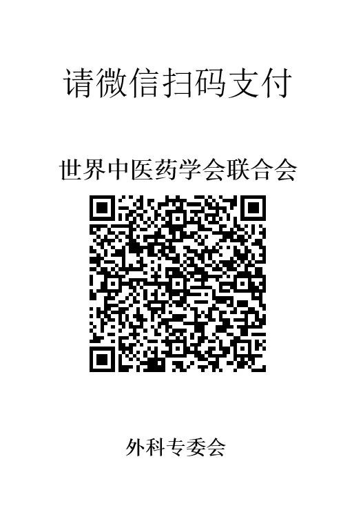 本次年会为外科专委会第三届理事会换届大会。请扫描下方二维码加入我们,完善个人信息,注册成为新一届学会会员(或微信公众号:世界中医药学会联合会→世联健康→专委会→外科专业委员会)。微信/转账缴纳会员费:500元/人(有效期5年),请备注会员姓名。会员审批及会员证邮寄将陆续进行。