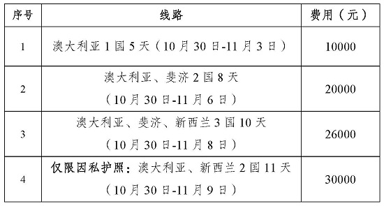 注:持因公护照人员出行机票及签证由所在单位进行购买。机票航班号预订信息详情见附件5。