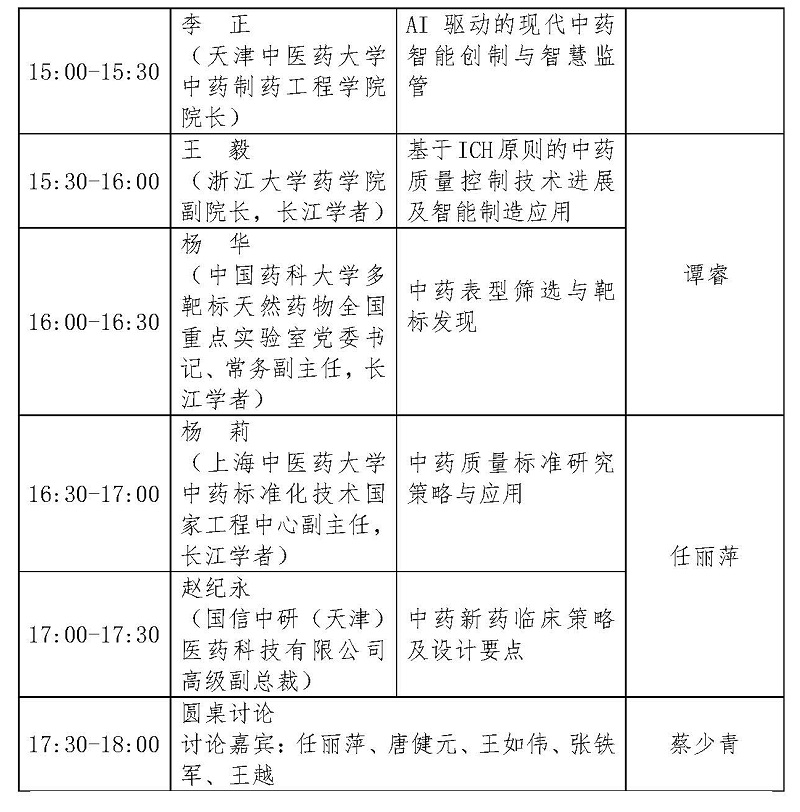 中药监管科学、中药新药创制关键技术问题。