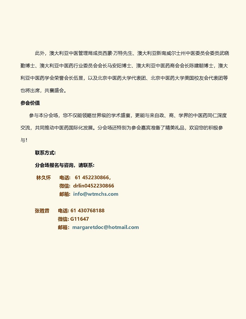 下一篇:第二十二届世界中医药大会分会场推介——(CN/EN)大洋洲中医药针灸学术研讨会