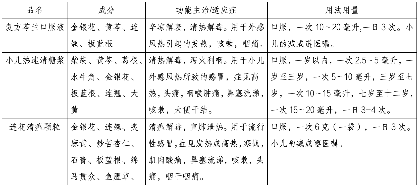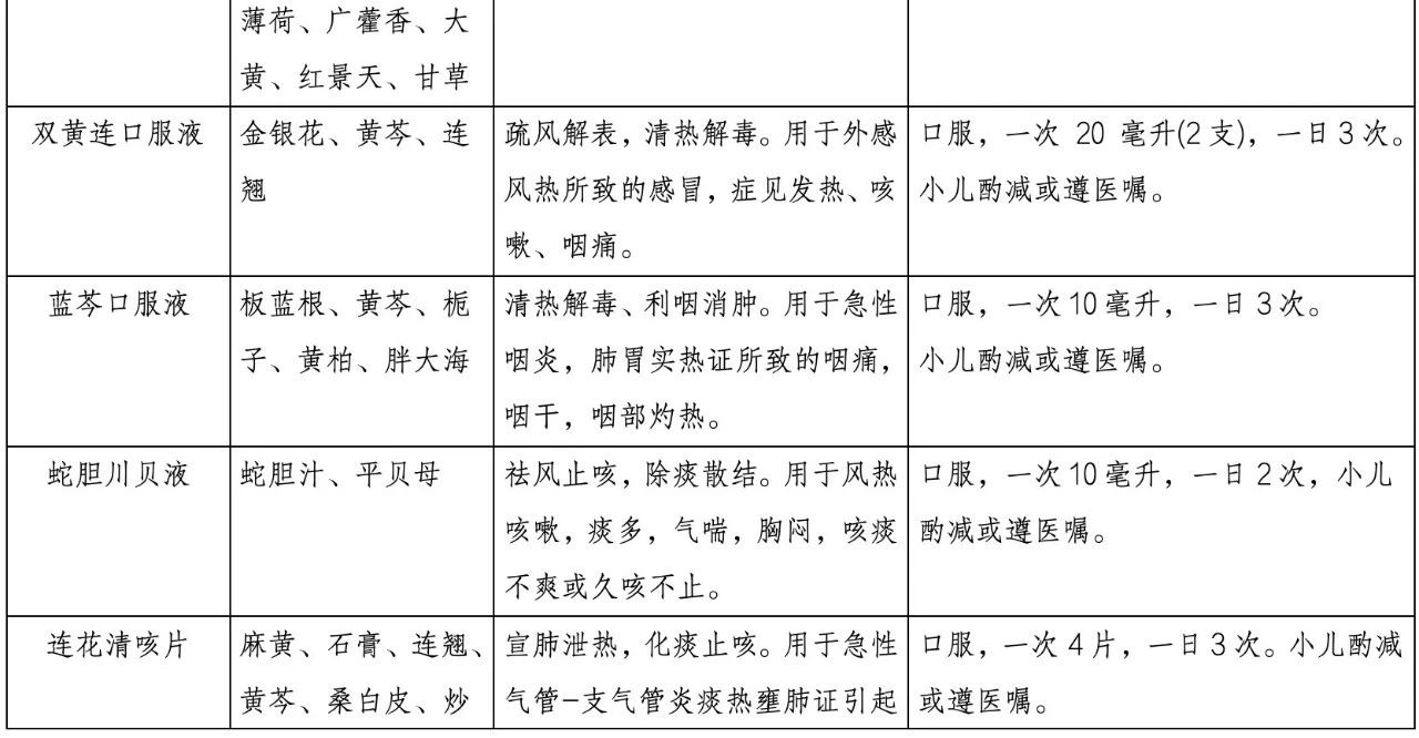 黑龙江省2024年冬季流感中医药防治指导方案相关中成药推荐目录